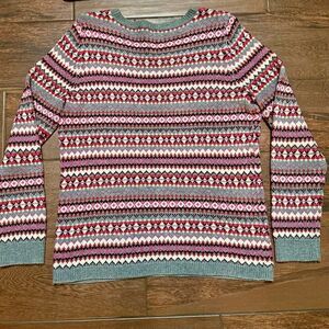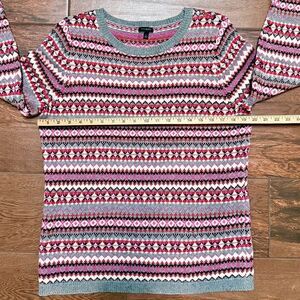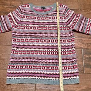 Talbots Womens Pink Fair Isle Lambswool Blend Crew Neck Pullover Sweater Sz L