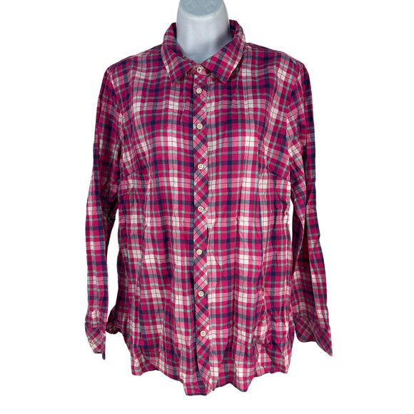 Talbots Womens Pink Plaid Button Down Long Sleeve Shirt Large Lightweight