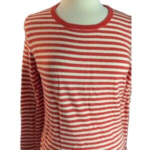 Talbots Women's Pink & White Stripe Wool Blend Lightweight Sweater Size Large