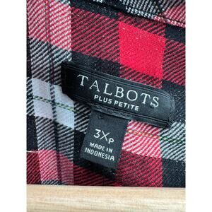 Talbots Womens Plaid Button Front Shirt Size 3XP Red Flannel Lightweight Fall