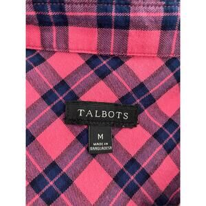 Talbots Womens Plaid Button Up Shirt Long Sleeve Collared Pink M Medium