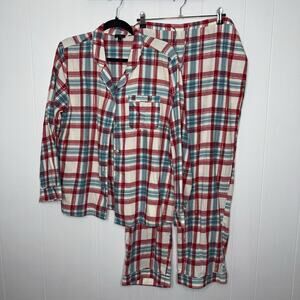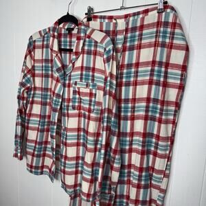 Talbots Women’s Plaid Pajama Set Red Blue Size Large
