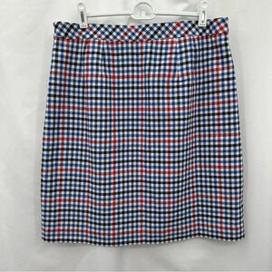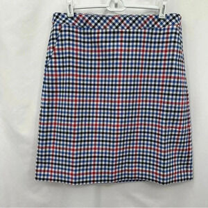 Talbots Womens Plaid Pencil Skirt 10 White Blue Red Lined Side Zip NWT