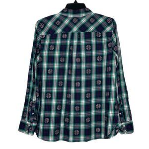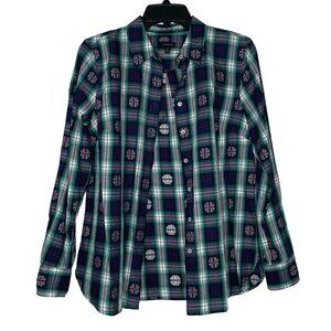 Talbots Womens Plaid Shirt Size Small Jacquard Snowflake Long Sleeve