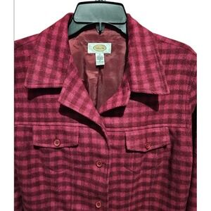 Talbots Women's Plaid Wool Blend Jacket Blazer Burgundy Pink Size 16