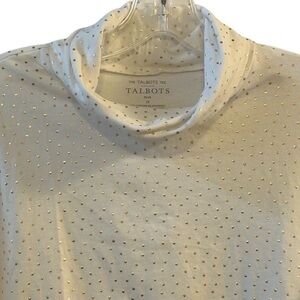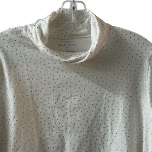 Keywords: Talbots, plus size, turtleneck, polka dot, cotton blend, long sleeve, casual, fall fashion, women's clothing, machine washable, comfortable fit, versatile, gold accents, pre-owned, excellent condition.