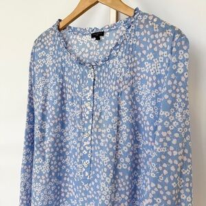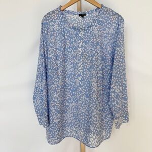 Keywords: Talbots, plus size, floral blouse, blue, long sleeve, cotton, pintuck detailing, casual, spring, women's fashion, machine washable, pre-owned.