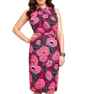 Talbots Women's Plus Dress Sheath Size 16 Pink Navy Lined Cowl Neck Sleeveless