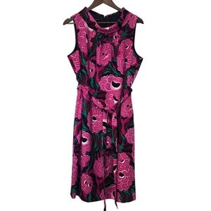 Embrace elegance with this sleeveless floral dress, featuring vibrant pink and green hues. Perfect for any occasion.