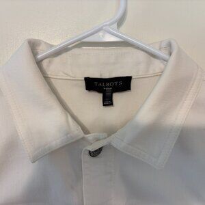 Talbots Women's Plus L/S Classic Button-Front Denim Jean Jacket 1X White Pockets