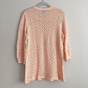 Talbots Womens Plus Open Knit 3/4 Sleeve Sweater Peach Size 1X Cotton Linen