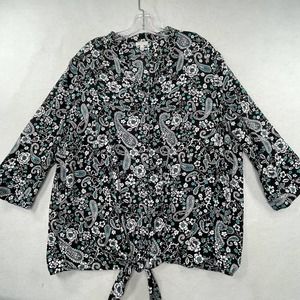 Talbots Womens Plus Size 2X Printed Lightweight Polyester 3/4 Sleeve Blouse Top