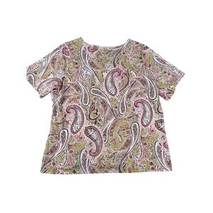 Talbots Womens Plus Size 3X Paisley Print Short Sleeve T Shirt Top