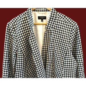 Talbots Women's Plus Size Black White Gingham Linen Blend Blazer 24W Summer NWOT