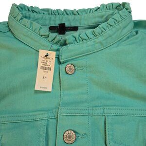 Talbots Women's Plus Size Green Denim Long Sleeve Ruffle Neck Jacket 3X NWT