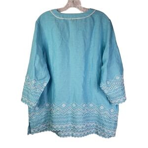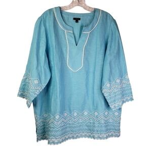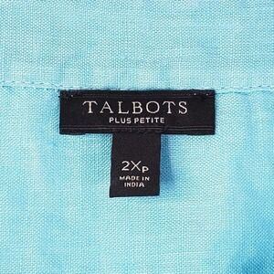Talbots Womens Plus Sz 2XP Petite Blue Cotton Linen Popover Tunic Top