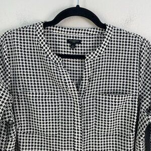 Talbots Womens Plus X Houndstooth Tunic Top Long Sleeve Black White Shirt Blouse