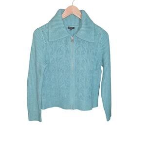 Talbots Womens Blu/Green Pointelle Knit Full Zip Chic Spread Collar Sweater Jacket Size MP, Like New! Please See Measurements For Best Fit,