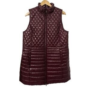 Talbots Womens PrimaLoft Quilted Sleeveless Puffer Long Vest Size L Burgundy