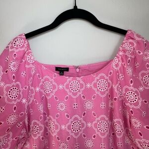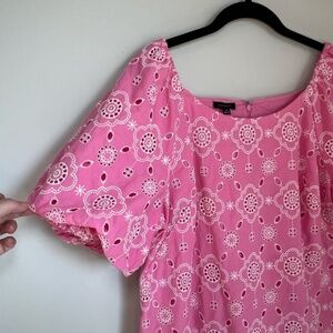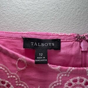 Talbots Womens Puff Sleeve Embroidered Eyelet Shift Dress Pink Lined Zip Size 12