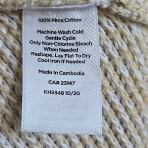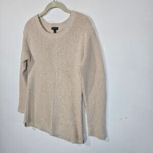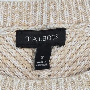 Talbots Women's Pullover Crew Neck Sweater. Size Small. Medium Beige; Curved Hem; 100% Pima Cotton. Measurements Pit To Pit 18 Inches; Length 26 Inches; Sleeve 25 Inches.