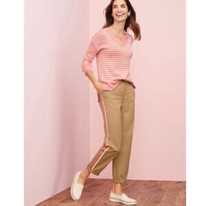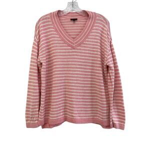 Talbots Womens Pullover Knit Sweater Size M Pink Striped Linen Blend V-Neck Slit