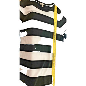 Talbot's Women's Black and White Striped Pullover Sweater 3/4 Sleeve with Gingham Cuffs