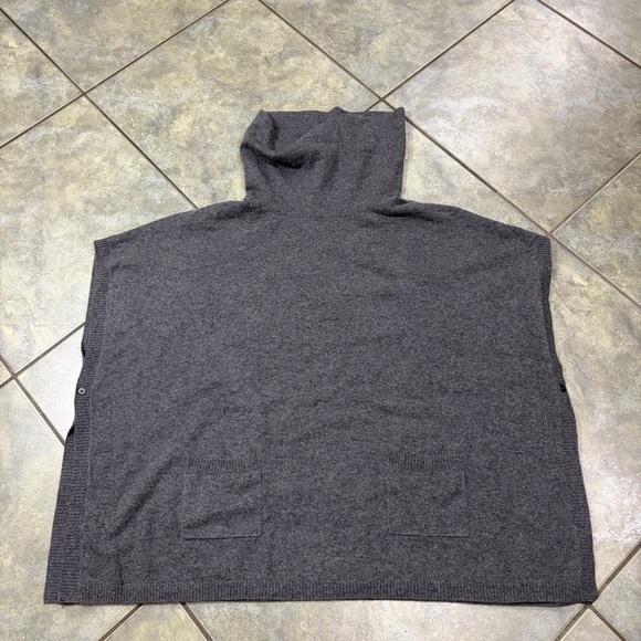 Talbots Womens Pure Cashmere Gray Turtle Neck Poncho Sz L Preppy Career Casual