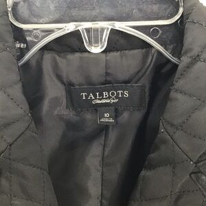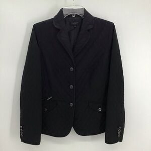 Talbots Women’s Quilted Jacket Solid Color Diamond Pattern Black Career Size 10
