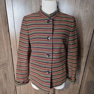 Talbots Womens Rainbow Colorful Striped Mandarin Collar Blazer Jacket