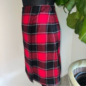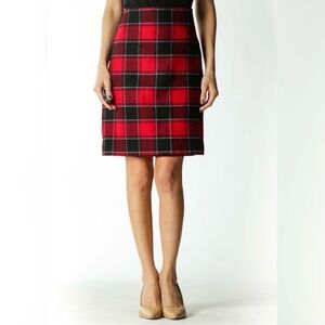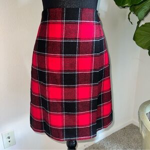 Talbots Women’s Red Black Baby Blue Plaid Faux Wrap Lined Wool Blend Skirt 4