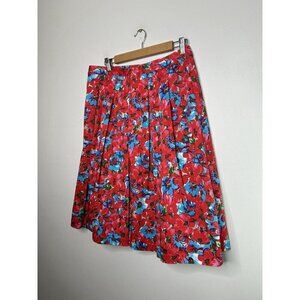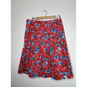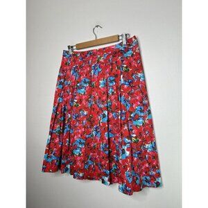 Talbots Women’s Red Blue Floral Midi Pleated Skirt Size 8