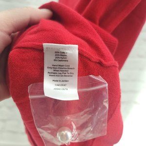 Elevate your casual style with this classic red cardigan sweater from Talbots. The V-neckline and button front design add a touch of sophistication, while the tight-knit cotton blend fabric makes it breathable and perfect for winter wear. The long sleeves and regular fit ensure a comfortable and stylish fit for any occasion. The sweater features a solid pattern with casual sleeves and accents, and is specially designed for petite women. Hand wash only to maintain its quality. This versatile sweater is perfect for adding a pop of color to any outfit and is a must-have for any wardrobe.