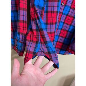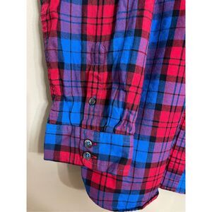 Talbots Women’s Red, Purple, and Blue Plaid Button Down Blouse Petite Large