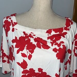 Talbots Womens Red White Floral Top Short Sleeve Rayon Tunic Blouse XL.