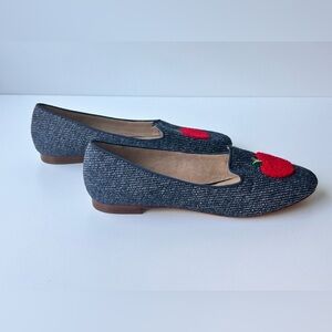 Talbots Women’s Ryan Loafer Red Apple Blue Twill leather sole size 7.5