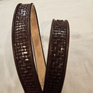 Talbots Womens S Brown Genuine Leather 1" Belt Adjustable Basket Weave Inlays