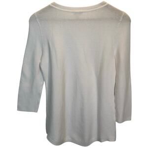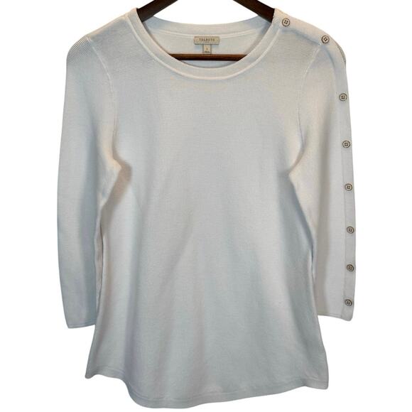 Talbots Women’s S Button Sleeve Cotton Sweater White Gold Preppy Minimalist EUC