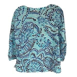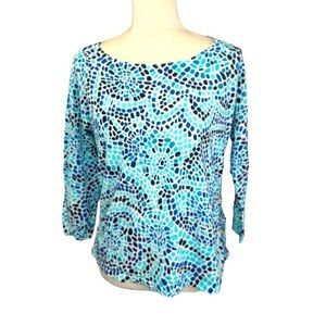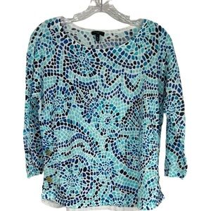 Talbots Womens SZ MP Sweater Top Lightweight Crew Neck Side Button Detail Preppy