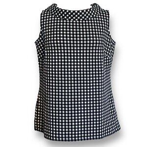 Talbots Womens Sabrina Shell Top Plus Petite XP Black White Gingham Jacquard