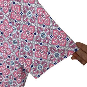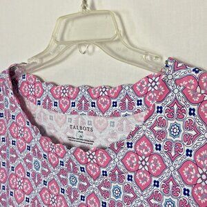 Talbots Women's Scalloped Neck Knit Top Sz 2X Geometric Print Pink Blue White
