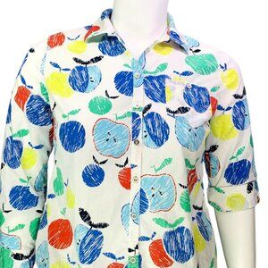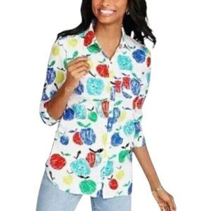 Talbots Womens Shirt Apple Multicolor Roll Tab Sleeve Button Up Petite Size Lp