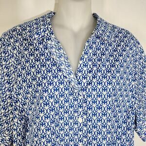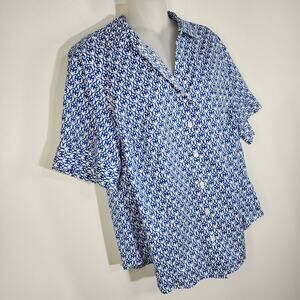 Talbots Womens Shirt Non Iron 16WP Blue Medallion Geometric Short Sleeve Button