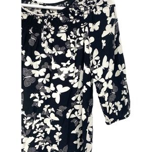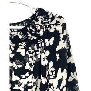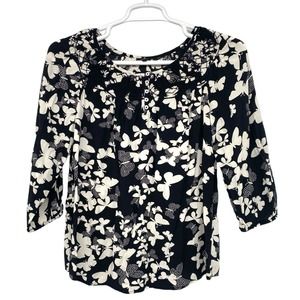 Talbots Womens Shirt Petite Sz Small Multicolor Butterfly Print Smocked Classic