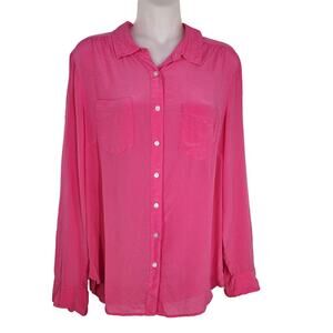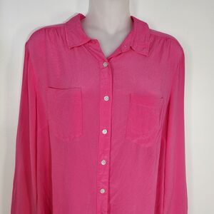 Talbots Womens Shirt Size 10 Pink 100% Silk Long Roll Tab Sleeve Button Pockets