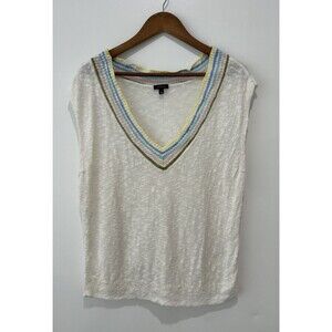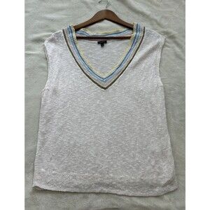 Talbots Womens Shirt Vest Large V Neck Linen Blend Beachy Resort Layering