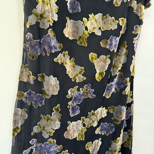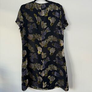 Talbots Women's Short Sleeve Floral Black Knee-Length Shift Dress Size 14P