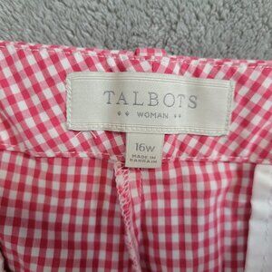 These Talbots Women's Shorts in size 16W Plus feature a red/white gingham check pattern, zip fly closure, and a lightweight chino style. Perfect for casual occasions and travel, these shorts have a regular fit with a 10.5-inch inseam and slit pockets. Machine washable and easy to care for, these versatile shorts can be worn throughout the seasons and are perfect for walking activities. Made in Bangladesh, they offer a comfortable and stylish option for plus size women looking for a casual yet fashionable bottom wear.