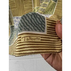Talbots Womens Silk Scarf Coastal Neutral Madras Patchwork Print Cottagecore Fit