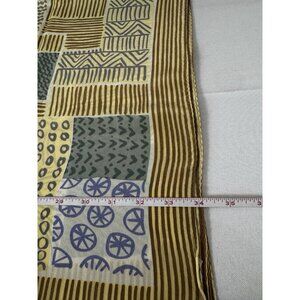 Talbots Womens Silk Scarf Coastal Neutral Madras Patchwork Print Cottagecore. This vintage Talbots silk scarf features a beautiful patchwork design, incorporating geometric shapes, stripes, and subtle botanical patterns in a coastal-meets-cottagecore color palette of neutrals, earth tones (yellow, brown, green), and soft blue. The overall effect is a sophisticated Madras style print. Made of lightweight, luxurious silk, this accessory is perfect for adding a touch of quiet luxury, bohemian, or modest style to any outfit, worn around the neck, as a headscarf, or tied to a handbag. The scarf is a large square shape, measuring approximately 32 inches by 34 inches. Material content: Silk. size, content and origin tags are all missing, all estimated, please check measurements for proper fit.